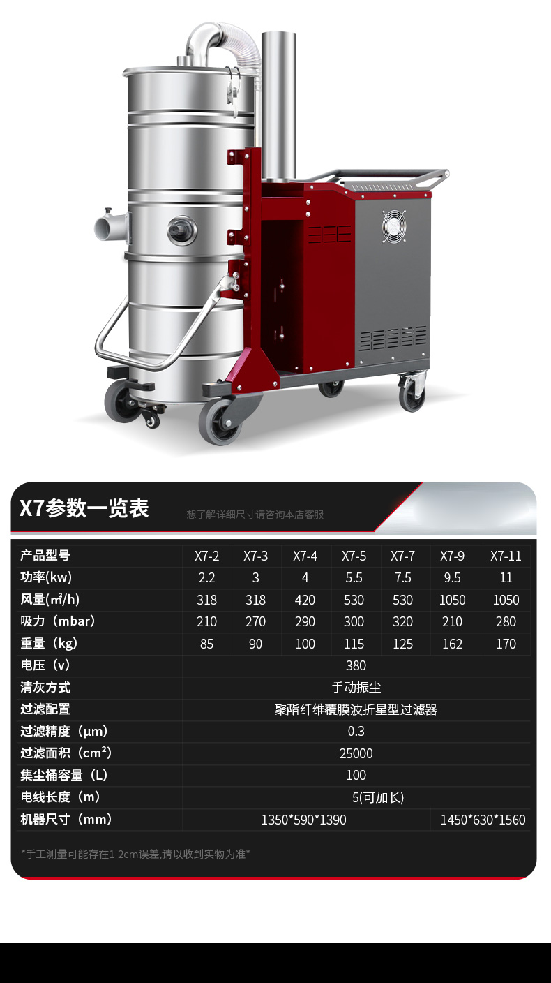 上海坦洁380V双桶不锈钢工业吸尘器X7系列
