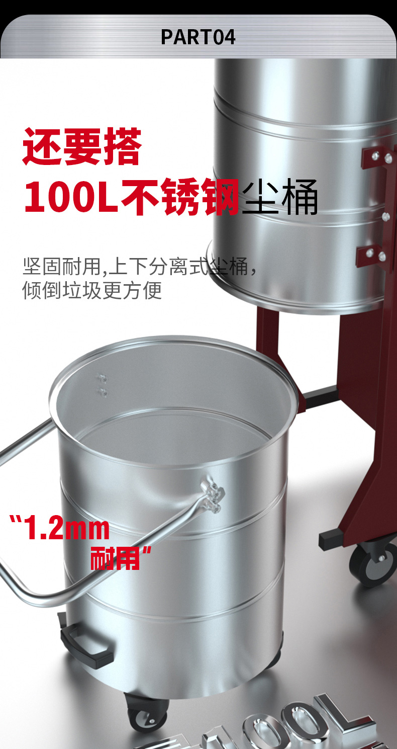 上海坦洁380V双桶不锈钢工业吸尘器X7系列